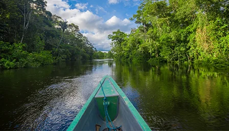 A floresta tropical amazônica, que cobre boa parte da região norte do Brasil e se estende até a Colômbia, o Peru e outros países da América do Sul, é a maior floresta tropical do mundo, famosa por sua biodiversidade. Ela é atravessada por milhares de rios, entre eles o grandioso rio Amazonas. Entre as cidades ribeirinhas, com arquitetura do século XIX que data do início da exploração de borracha, destacam-se Manaus e Belém, no Brasil, e Iquitos e Puerto Maldonado, no Peru.